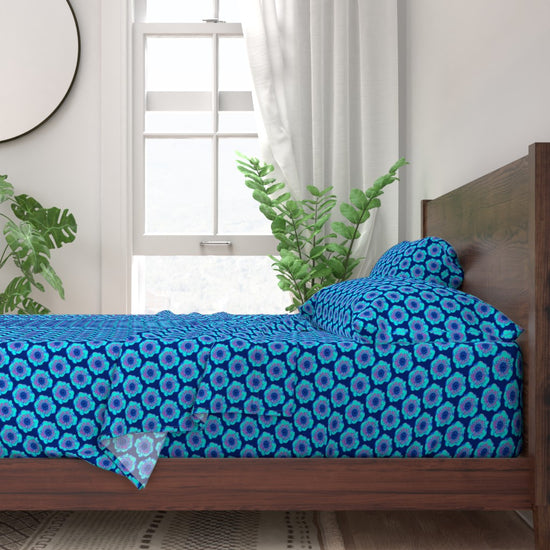 Sky Poppy Arctic is simply stunning with vibrant aqua, purple and blue poppies sprinkled across a deep blue backdrop reminding us of starry winter nights.