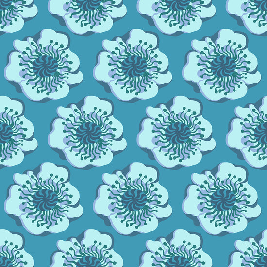 The Sky Poppy Collection enchants with a repeating pattern of hand-drawn, whimsical poppies set against a vivid background in bold colors that pop.