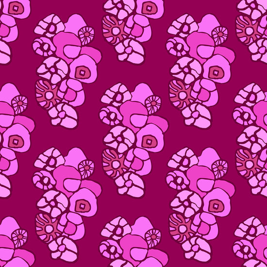 The Window Box Floral Collection enchants with a repeating pattern of hand-drawn, whimsical flower bouquets set against a vivid background in bold colors that pop.