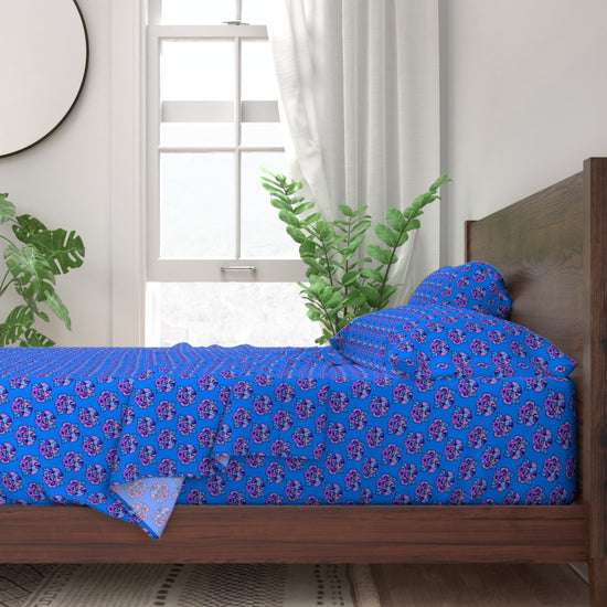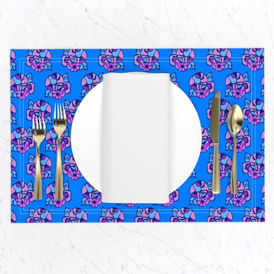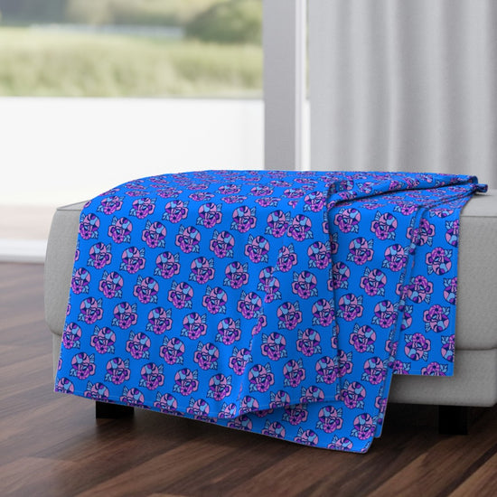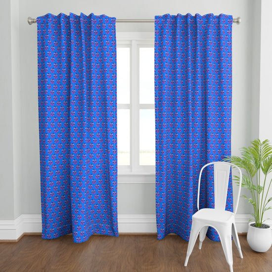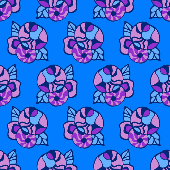 Window Box Swirl Azure is truly magnificent with blue, purple, and pink, hand drawn motifs set against a rich blue background that reminds us of all things majestic.